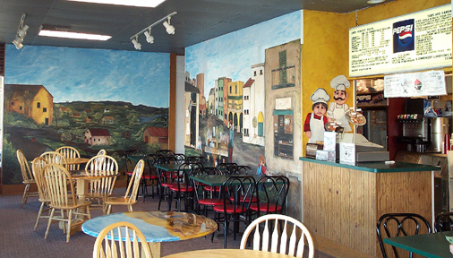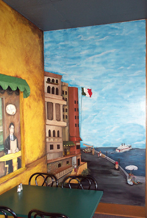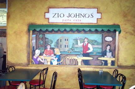The painted wall murals are on four interior walls of Zio Johno's Spaghetti House. The